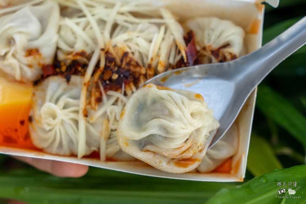 古饌亭招牌當然就是他們的手工湯包了,湯包的捏褶都非常整齊,一口咬下,那薄薄的外皮瞬間會爆出鮮甜的湯汁,吃的時候一定要特別小心燙口。肉餡吃起來紮實又帶有鮮甜的湯汁,這樣的好味道完全不輸給那些知名的台中小籠湯包。除了原味湯包,這裡也有辣味版本可以選擇,辣味湯包可以搭配薑絲和特製辣油,吃起來香辣過癮,超級涮嘴的。咬開來看,外皮確實很薄,內裡也有湯汁,不過湯汁沒有想像中的多,也許是騎車騎太慢,湯汁稍微收掉了,湯包的大小一顆一口剛剛好,吃起來很方便。