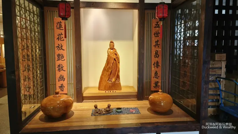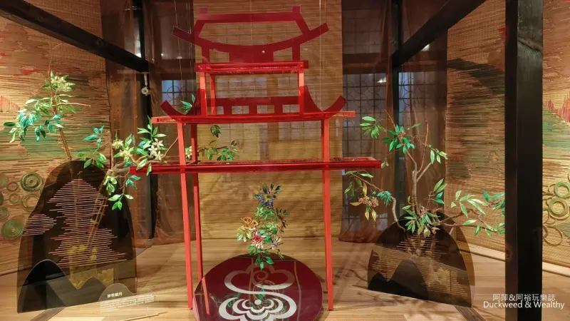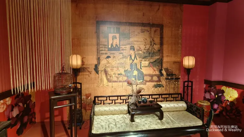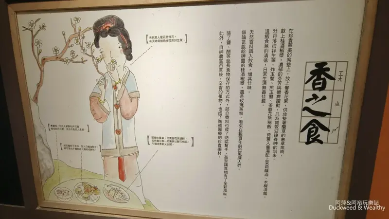 館內還有一個推薦的香爐打卡點,商品區裡則有線香、香粉、盤香、香環等多樣化的文創商品,送禮自用都非常適合。館區裡面布置得古色古香又很寬敞,認真慢慢逛可以逛很久,它模擬宋代文人雅仕品香的情境,以金色、桃紅為基調,搭配富貴的牡丹花,營造出文人四藝的優雅氛圍。走過每一區,可以聞到沉香、檀香、老山香等各種不同的香氣。