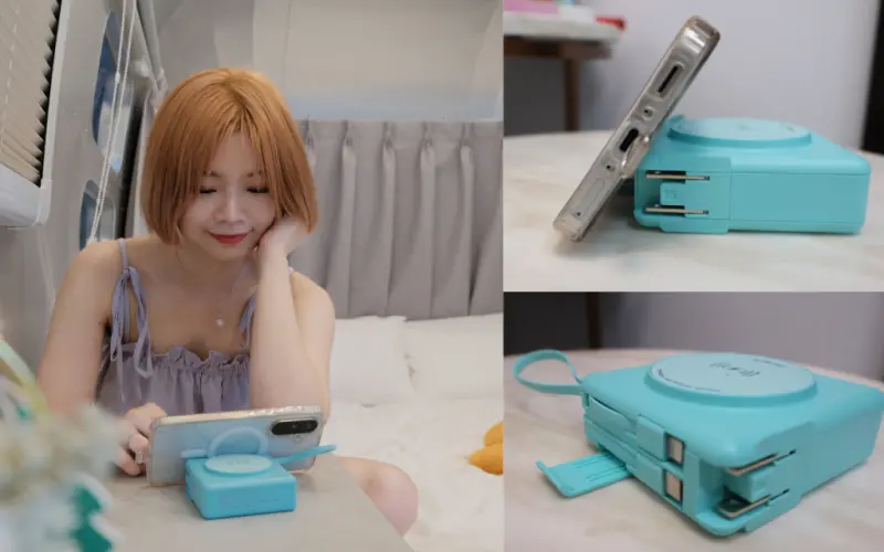 自帶支架設計,外出超方便!隨時一放就能邊充電邊追劇