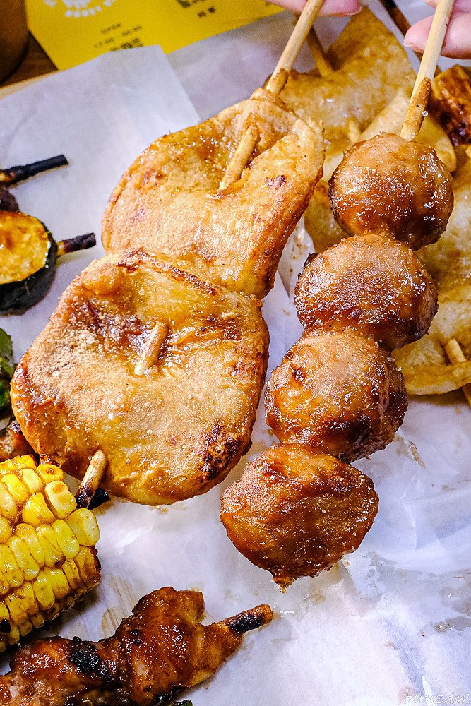 首先先來介紹幾樣店內必吃的串燒食材,像是甜不辣、雞腿肉串、豬五花肉串這幾款是店內人氣招牌。甜不辣軟Q厚實的魚漿,表面蜂蜜燒烤醬讓魚漿吃起來多了一分甜甜香味,好吃!