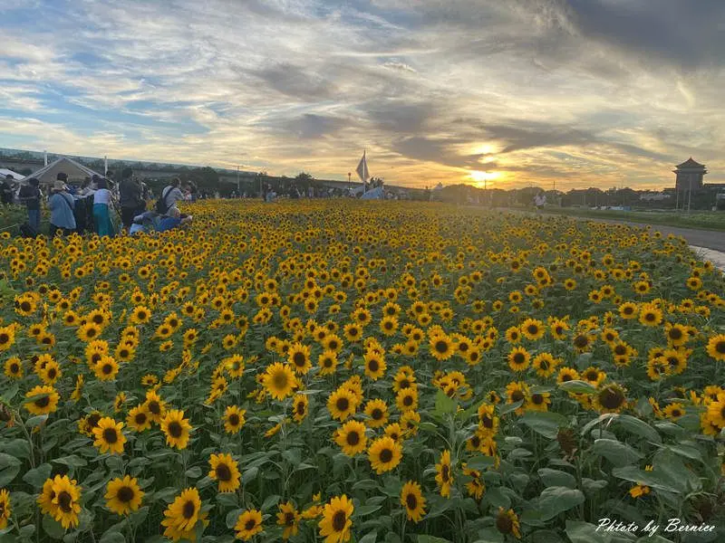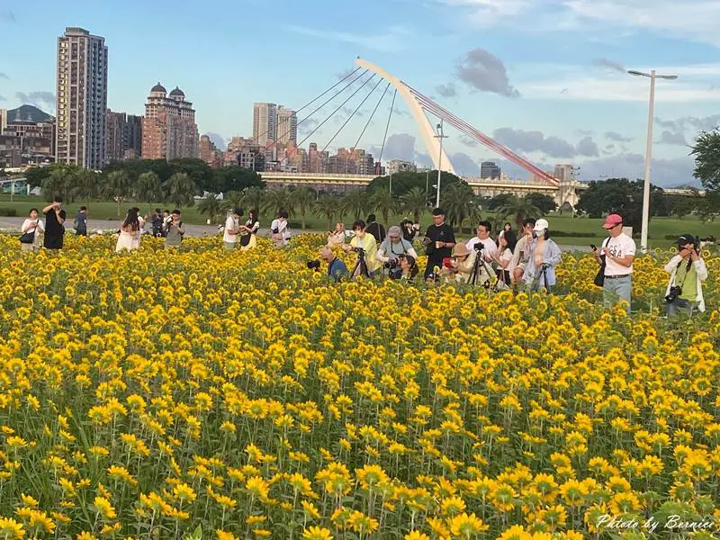 大佳河濱公園功能相當多,最熱門的就屬花海,今年以向日葵為主題且擴大範圍,原訂九月底綻放的花兒,現在有一小區域搶先綻放囉,目前約三成,這三成看起來不多,但實際到現場後,這三成的範圍也不小,熱情的花兒超吸睛
