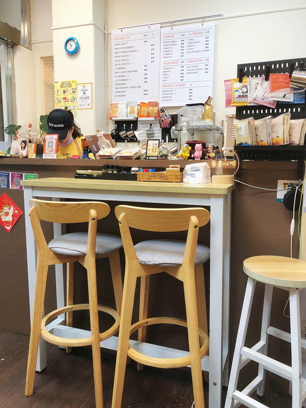 不到五坪的小空間,設有三張花紋小木桌和吧檯長腳椅,僅容納少數內用座位。