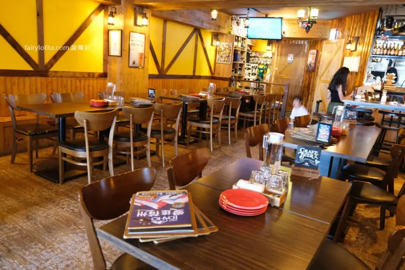 原木的木質調給人一種彷彿置身在美國鄉村的錯覺,我們來的時候正巧是離峰時間,否果是用餐時間裡面通常都是坐滿的,建議大家如果要來用餐,先打電話預約會比較保險呦!