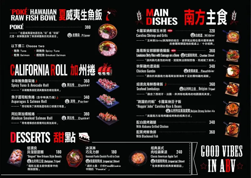 ABV Bar & Kitchen美式餐酒館 | 菜單 Menu