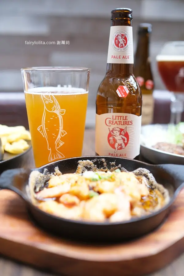 搭配了夏威夷蒜味蝦,這道料理本身油膩感比較重,搭配酒花精靈更有解膩效果。