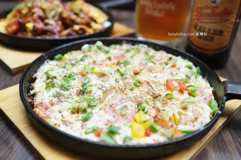 搭配經典美式火烤肉餅,啤酒還蠻有解膩的效果,其中這道也附有烤肉醬,單吃亦或是沾著醬吃都很不錯。