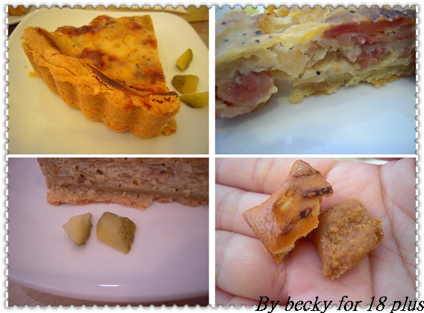 綜合菇派是用許多種的有機菇去做成的,派皮很脆,內餡較清淡點;我吃的是洋蔥培根派,濃郁的洋蔥甜味及培根的鹹味,搭上脆酥的派皮,讓我一口接一口,鹹派旁則是有酸黃瓜及小餅乾,小餅乾的內餡則是花生醬,鹹甜口感吃起來很特別;至於檸檬塔,內餡的奶油醬加有檸檬汁,所以單吃起來有點酸,不過加上派皮吃,二者合而一搭配吃起來卻是很入口。