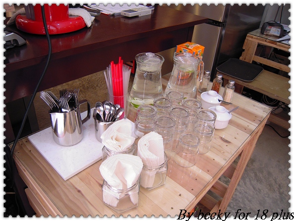 小小一家店,老闆只有二個人,所以採半自助式,像是餐具及倒水,都要自己自助。