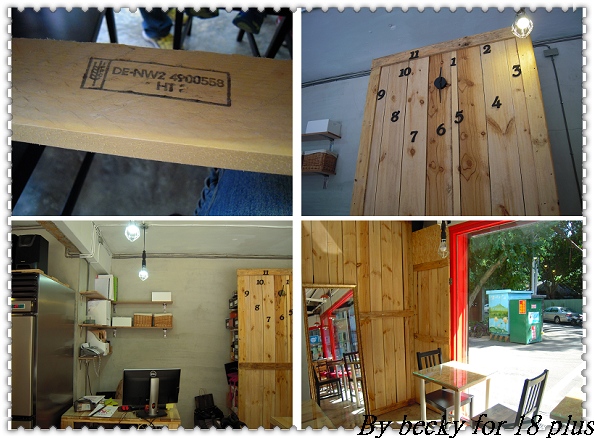 因為沒事先訂位,且去的時間早,所以沒什麼客人,好加在還可以有位子讓我們坐下來吃食,一進到店裡,裝潢很簡約,全是木板裝飾,其牆上的時鐘也很有特色,整個就很樸實。