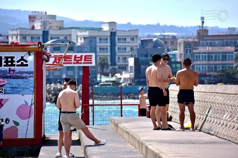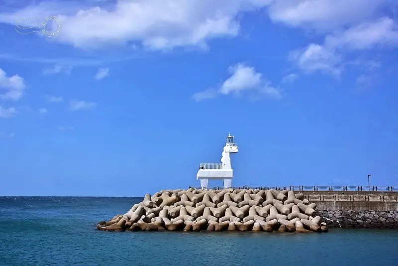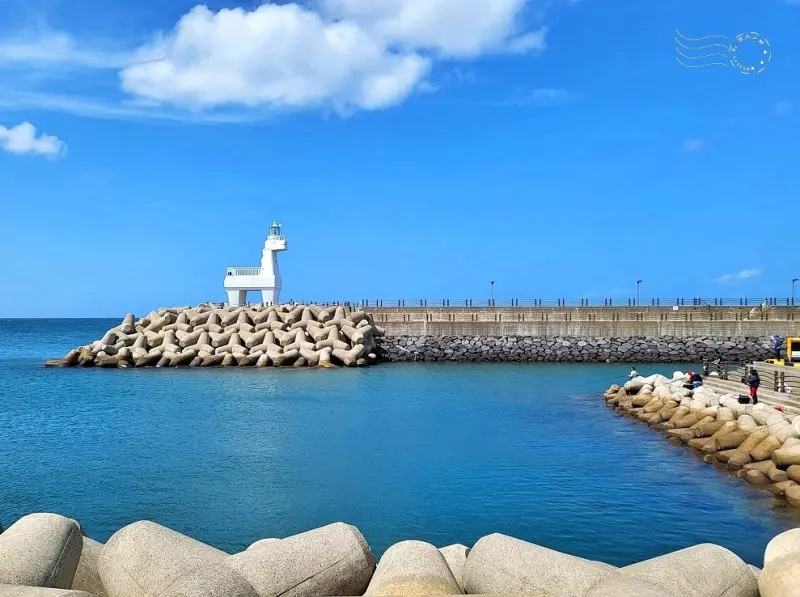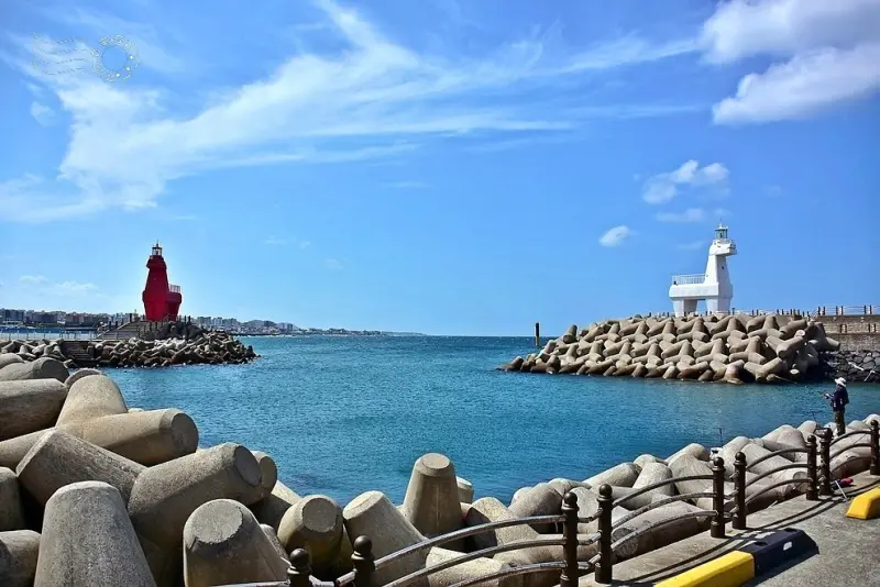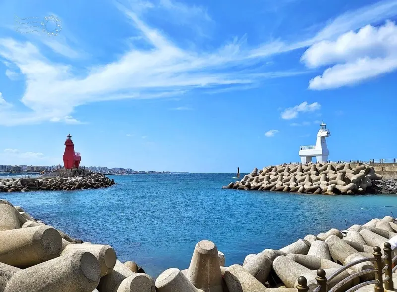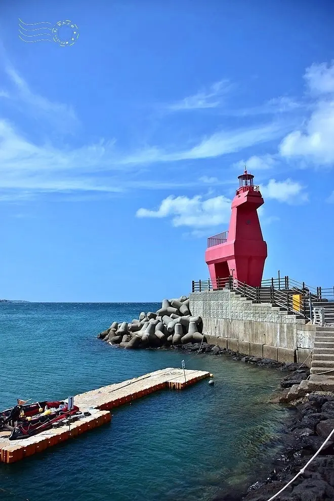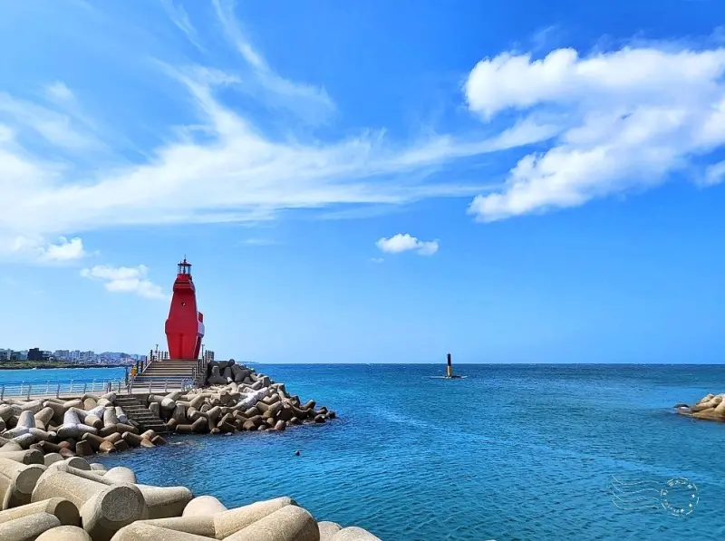 濟州島梨湖港最可愛燈塔!梨湖港紅白馬燈塔,享受海風中童話般的守護。