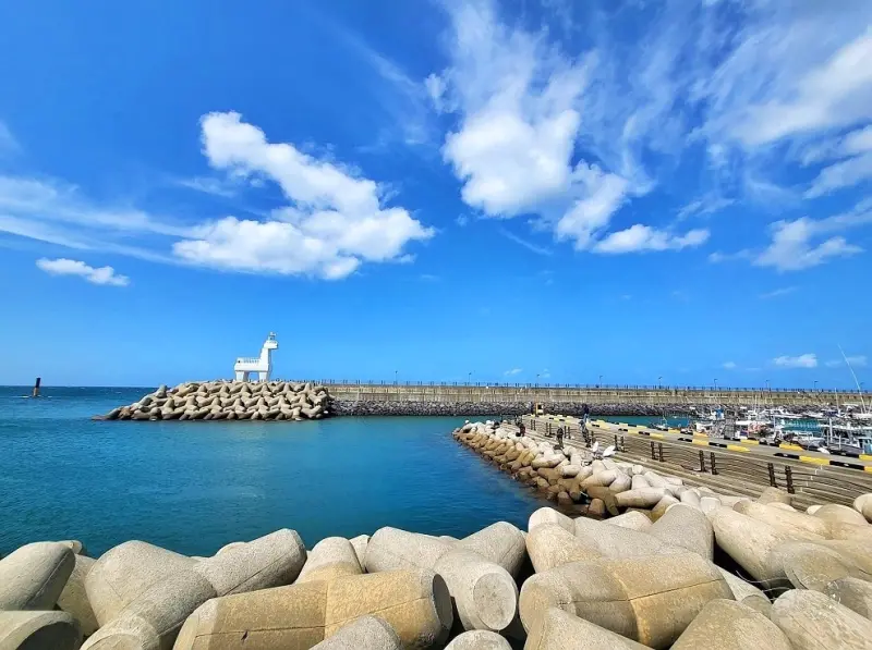 即使只停留短短20分鐘,旅人都能夠心滿意足,因為這裡碧海藍天,白雲如絮,景色跟氣象預報結果截然不同,運氣超好。時間充裕的朋友,可以沿著步道走到白馬燈塔去打卡,若黃昏前抵達,還可以拍到夕陽與剪影效果。此外,梨湖紅白馬燈塔免門票參觀,遊客可以到梨湖海水浴場玩水,或者到附近海景咖啡廳、小吃攤或海鮮餐廳享用在地美食,結合成悠閒的半日遊。