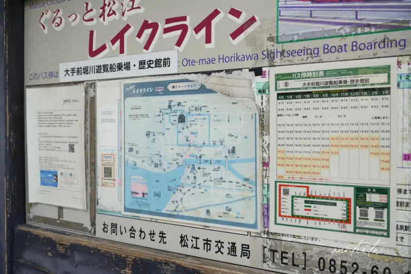 這次的行程是從「松江堀川遊覽乘船場,歷史館前站」搭乘「松江 Lake Line 循環巴士」到島根縣立美術館下車。公車站牌就在堀川遊覧船乘場前面很好找,最大的地標就是島根物產館對面。松江 Lake Line 循環巴士的外型很復古,它分成紅色跟綠色,紅色是嫁島路線,綠色車則是一般路線。雖然兩條路線都會經過島根縣立美術館,但如果要在「嫁ヶ島夕日公園」看夕陽,則是要搭乘嫁島路線喔。觀賞宍道湖夕陽的絕佳地點就是島根縣立美術館旁,或者嫁ヶ島夕日公園站,兩站的距離步行大約十分鐘。想要知道最精準的日落時間,可以到松江市設立的官方網站「宍道湖夕陽指數」查詢每日的日落預計時間以及可以看到夕陽的指數。