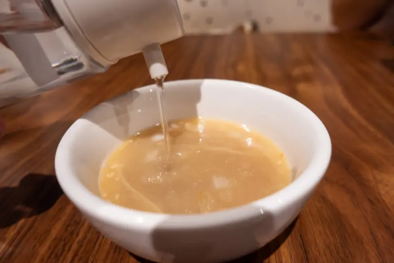 這裡招牌的儀式感大家一定要試一次,服務人員會現場用「厚白牛骨湯」手沖在牛肉片上,牛肉瞬間就會變成粉嫩色澤,湯頭溫潤醇厚、暖胃又驚艷。如果想讓味道更濃烈,還能自己加一點米酒提味,酒香跟牛肉的甜味交織,會讓湯更添層次。潮牛殿還設計了三種特色沾醬,像是最道地的台南沾醬必加甜油膏,鹹甜交織最能襯托牛肉本味,清爽不膩的香蔥油醋沾醬,以及帶點辣香、層次豐富的潮牛特製沾醬,一次滿足不同喜好。