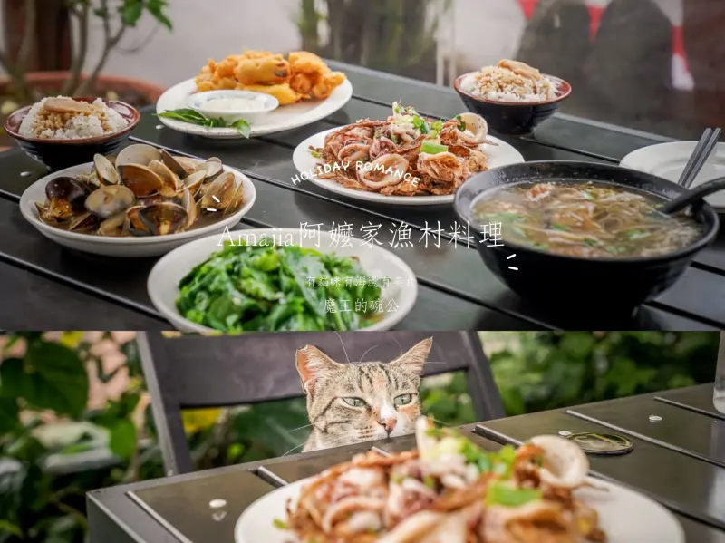 Amajia 阿嬤家的營業時間,漁村料理咖啡廳部分則只有假日營業,這裡是可以訂位、接受現金消費的寵物友善餐廳,店內還有三隻親人的米克斯貓咪,分別是貓頭鷹、小花、跟小三八,吃飯時牠們甚至會坐在旁邊盯著客人,室內外加起來目測約可容納近40到50人用餐,點餐主要看店家上方的看板,上面打星星的就是招牌菜,餐點份量很足,像是當天兩個人就點了四菜一湯,建議多找朋友來才能多點一些拿手菜,另外百搭的飲品可樂也別忘了點。