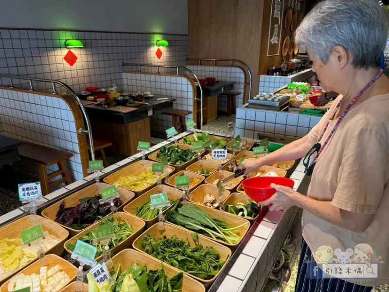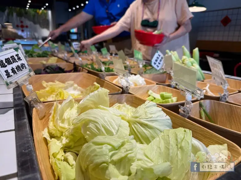 一盤盤新鮮蔬菜排開,從常見到稀有野菜通通都有,就像一座縮小版菜市場! 還有貼心的葷素夾子分色,素食者也能放心大口享受。