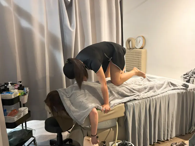 緊接著搭配精油來個全身按摩,力道不會過猛,細緻又帶勁的按摩節奏,沒三兩下我的背已經起了紅痧,肩頸那一塊通通被釋放,整個人徹底放鬆