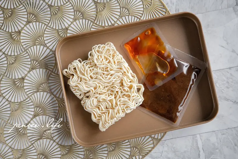 每袋有三包,一包適合單人份,裡頭包含了:醬包、油包及麵體;