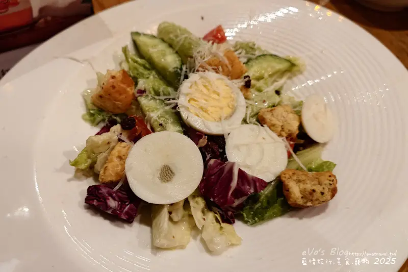 這道 凱薩沙拉 以新鮮 蘿蔓葉生菜 為基底,搭配特製 凱薩醬,口感清爽順口,非常適合在享用 炸物、烤物或重口味料理 之間穿插食用,不僅解膩,也讓味蕾更為平衡,蛋奶素食者亦可安心享用