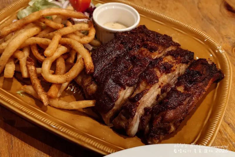 這道 大窯大擺烤肋排 採用獨門醬汁醃製,烤出來帶有迷人的煙燻香氣,肉排入味且肉質軟嫩,輕輕一剝即可骨肉分離,非常方便食用,搭配 金色三麥經典薯條 一同享用,更增添美式餐點的豐富口感,是聚餐必點的主菜之一