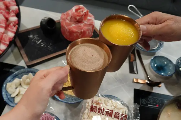 我們這次點了超受歡迎的麻辣牛奶湯跟蒜頭雞白湯,真的超推!蒜頭雞白湯則蒜味濃郁又溫潤,清香不膩,喝起來超舒服,配上麻辣牛奶湯的重口味,根本是完美的鴛鴦鍋組合!