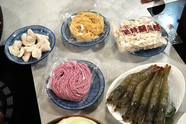 先挑湯底,像經典的蒜頭雞白湯或貴州紅酸湯都超熱門,如果想特別一點還能選加價湯底;接著挑主餐跟肉量,無論是小鳥胃還是大胃王都能找到剛剛好份量;最後再選附餐,從芋香米飯到關廟刀削麵、甚至火龍果圈圈麵都超有特色,完全就是一場「自由配火鍋」的體驗。