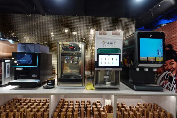 這些機器都是嚴選過的,不是隨便湊數。像是雀巢現調冷飲機供應的低糖薏仁水、大紅袍烏龍、卡曼橘果汁,甚至還有手搖等級的逸萃茶飲,完全不輸專業飲料店。