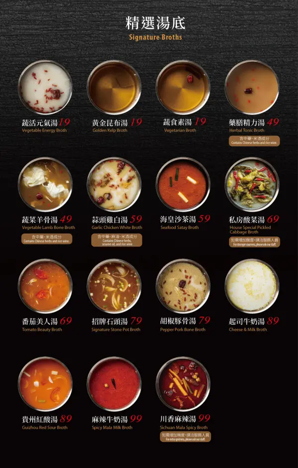 不管你點的是麻辣牛奶、蒜頭雞白湯,還是其他任何湯底,加湯時都是加原本的湯底,而不是加原味高湯!湯頭不會因為加湯而變淡。不管你煮了多少肉片、海鮮跟蔬菜,每一口湯喝起來都跟剛上鍋時一樣濃郁、也能吃到最原汁原味的鍋物!