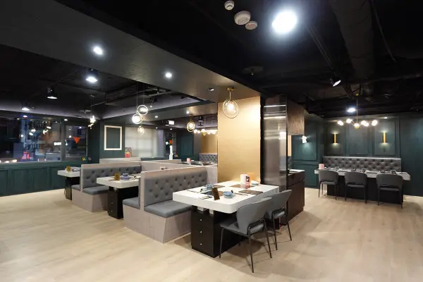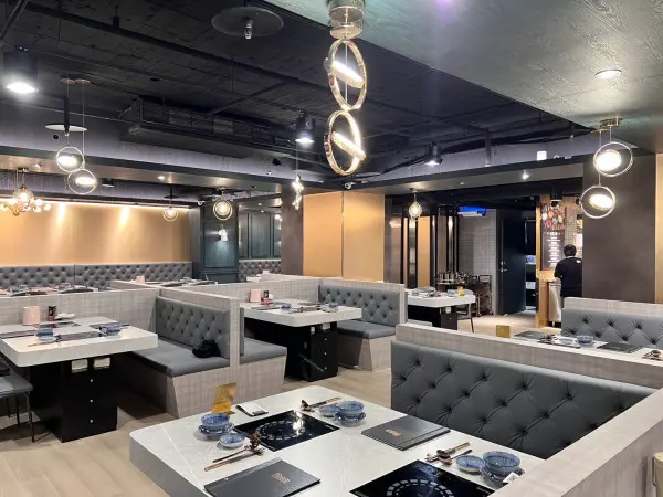 座位以四人桌為主,大部分都是沙發卡座,木質背板加上格紋設計,再搭配灰色復古拉扣布沙發,坐起來超舒服,氛圍溫馨又帶點時尚感。