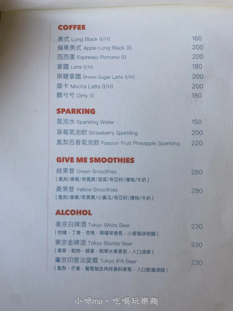 檸檬清香融合咖啡的厚度,喝起來爽口又帶勁,特別適合坐在窗邊看海時來一杯。缺點就是份量稍小,哈哈,喝不過癮。