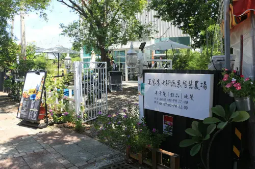 萬客來水耕蔬菜微型智慧農場,用餐空間概分戶外庭園與室內兩區,庭園區以戶外陽傘遮陽,有大樹與植栽布置,環境綠意盎然。![]()