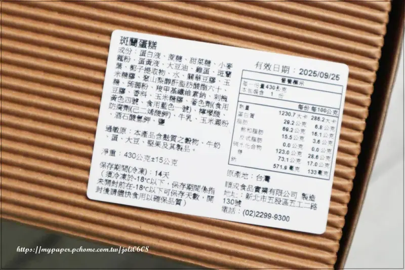 由蛋糕界老字號【順成蛋糕】推出的斑蘭蛋糕