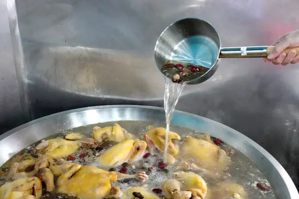他們家每天堅持用30隻嫩黃土雞熬煮湯底,真的是超級費工!因為嫩黃土雞的脂肪比老母雞更少,肉質也比較細緻,這樣熬出來的雞湯才會清澈又好喝,不會有那種油膩感。客人可以喝到清爽又濃郁的雞湯,既能喝到雞肉的精華,又不會覺得油膩,喝完也不會有負擔。