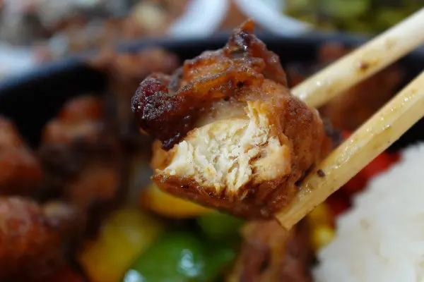 乾鍋雞呃雞肉吃起來帶點花椒的香氣,雖然有一點點辣,但是不會太嗆,而且雞肉處理得很好,外皮酥脆裡面又多汁,完全不會柴,超棒!