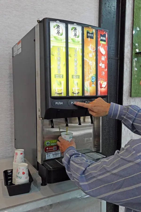 冷飲機提供的飲料也很讚,有原萃日式綠茶、美粒果柳橙汁跟美粒果蘋果汁,像綠茶就很適合搭配油炸或肉類,清爽解膩;柳橙汁和蘋果汁則是大人小孩都愛,酸酸甜甜的,吃完飯來一杯超讚!