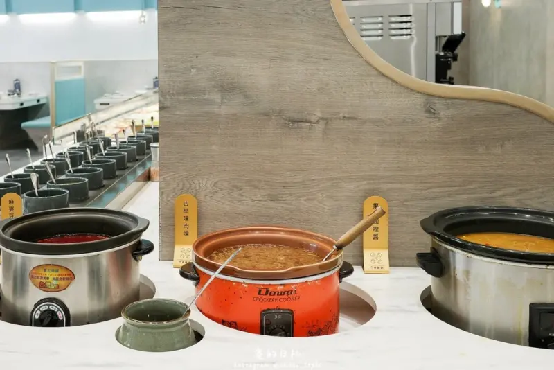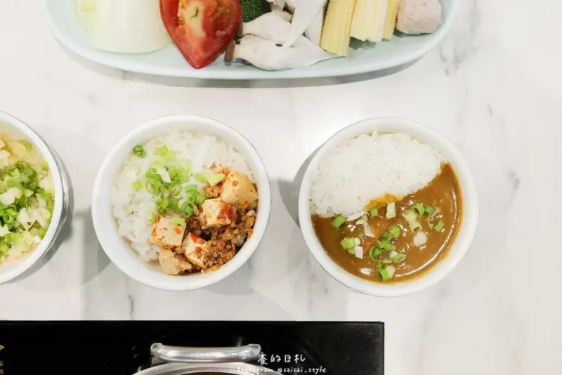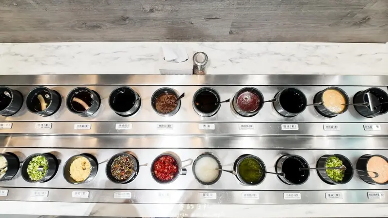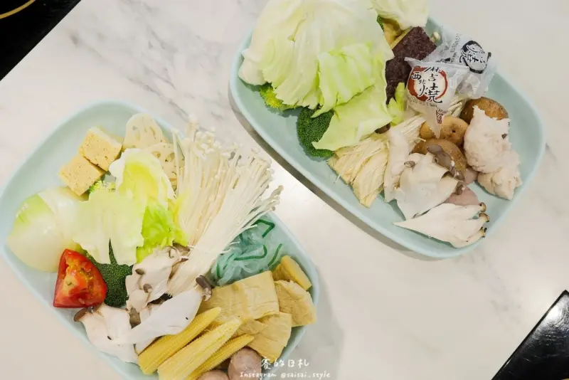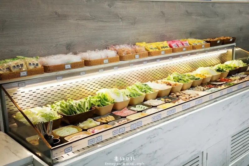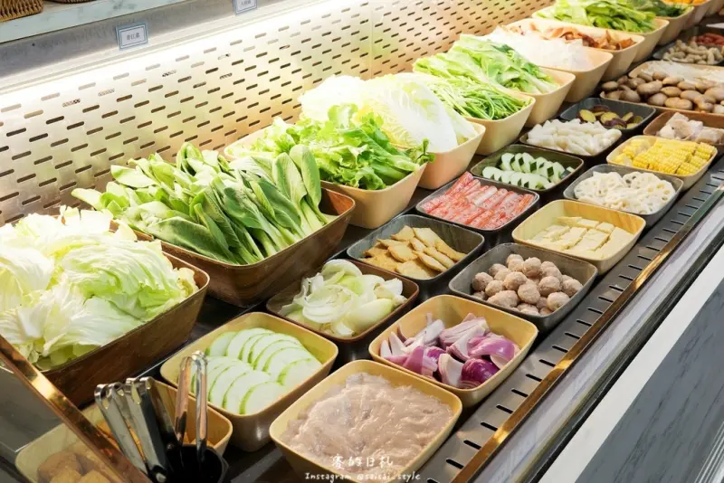 店內最大的亮點之一,就是採自助吧形式的蔬菜專區,業者每日精心挑選超過30種當季新鮮蔬菜、菇類與火鍋料,一字排開的陣仗相當驚人,從常見的高麗菜、青江菜、金針菇,到水蓮、娃娃菜等都應有盡有,一旁還有提供白飯、王子麵、冬粉等主食以及多款飲品,全部採無限量供應的方式,讓顧客可以吃得健康又滿足。