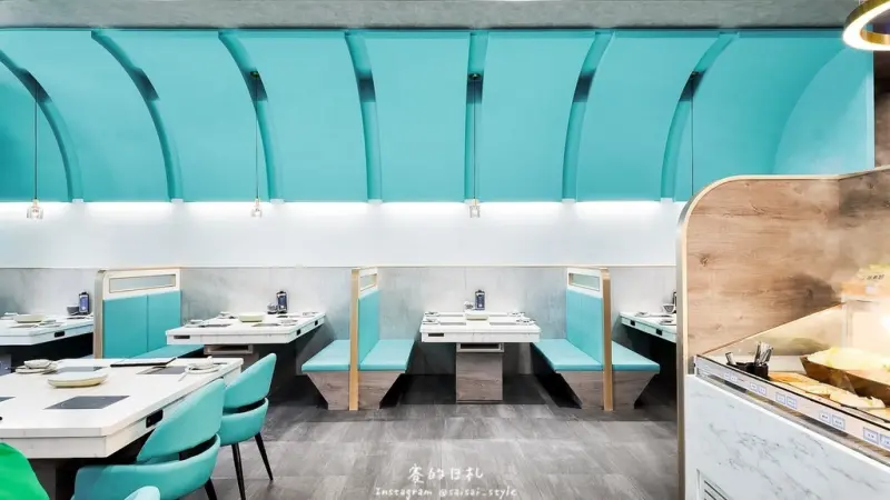 「冭夯鍋物」的地理位置相當優越,就開在北屯好市多附近,許多民眾採買完後便會直接到店裡用餐,餐廳正對面就是敦富公園與停車場,對於開車族來說非常方便。店內的裝潢風格也讓人眼睛為之一亮,採用高雅的蒂芬妮藍色調,搭配木質桌椅與柔和燈光,營造出清新舒適的氛圍,完全沒有傳統火鍋店常見的油膩感,讓顧客可以很放鬆地享用美食。