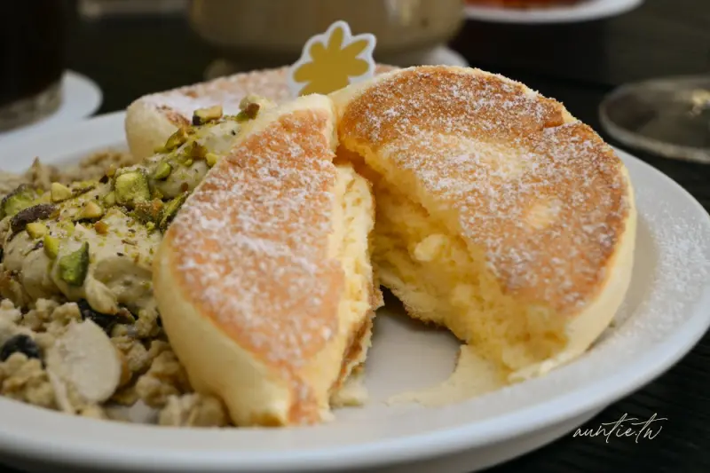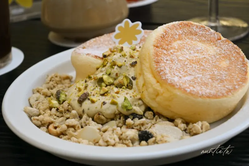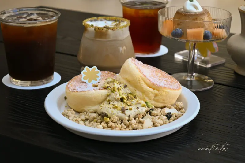 來到「hsïa夏咖啡」,絕對不能錯過的就是店內的招牌甜點「日式開心果舒芙蕾」,現點現做的舒芙蕾鬆餅擁有如雲朵般蓬鬆柔軟的口感,入口即化,濃郁的蛋香在口中散開,搭配店家特製的開心果醬,更是將美味提升到另一個層次,這款開心果醬甜度恰到好處,質地細緻滑順中還帶有真實的堅果顆粒,與輕盈的舒芙蕾本體形成完美的搭配,另外,「開心果物語」拿鐵也同樣出色,濃郁的堅果香氣與咖啡完美融合,讓人一喝就愛上。
