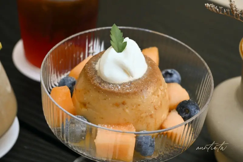除了令人驚豔的開心果系列,「hsïa夏咖啡」的其他品項也同樣展現了店家的用心與創意,清爽系的「話梅汽泡美式」將美式咖啡與話梅的酸甜鹹香巧妙結合,風味獨特,非常適合炎熱的夏日,而「新鮮手工水果布丁」更是不可錯過的經典,布丁本體口感滑嫩細緻,搭配甜而不膩的手工焦糖醬汁,每一口都是最純粹的幸福滋味,從每一道精心製作的餐點中,都能感受到店家對於品質的堅持,讓這趟下午茶體驗更加完美。