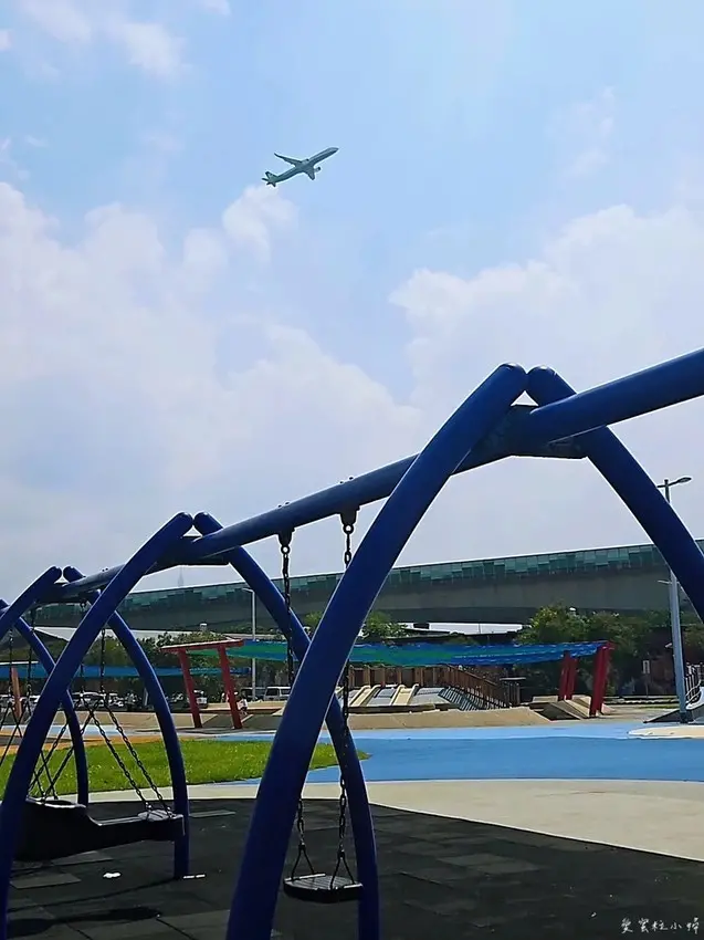 大佳河濱公園還有共融遊樂場和希望之泉,還能看到飛機從頭上飛過。