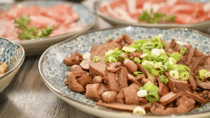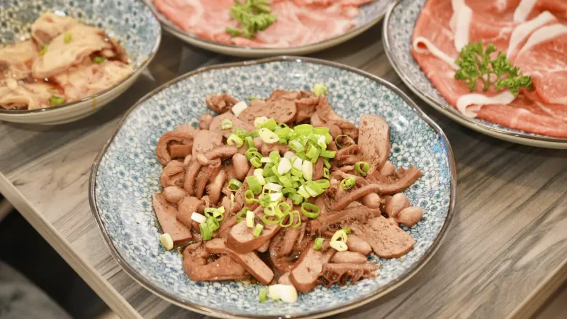 除了鍋物之外,九四火鍋的私房料理也相當值得推薦。滷味拼盤包含滷牛肚、滷大腸、滷豆乾、滷花生。滷汁入味非常下飯,滷花生的口感脆軟適中,滷大腸也沒有腥味,滷牛肚更是 Q 彈美味。