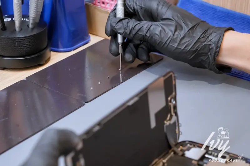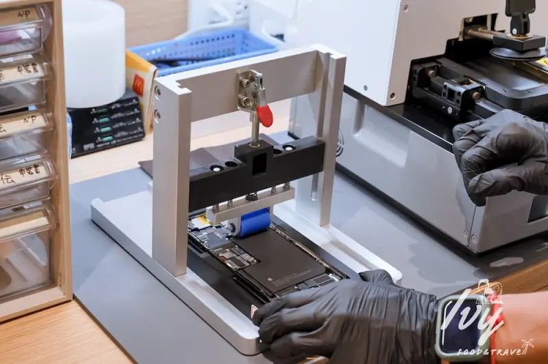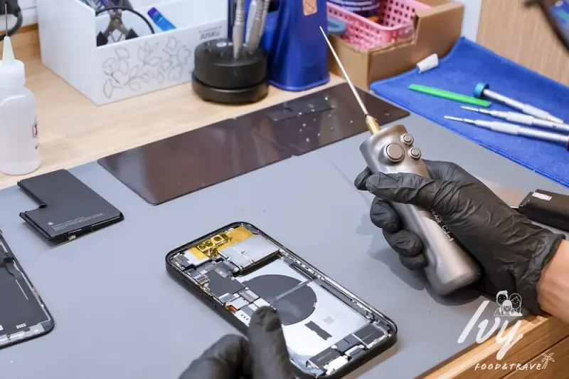 在鼎威維修沙鹿店換iPhone電池,拆手機過程很療癒,也發現他們每一步都很仔細小心。