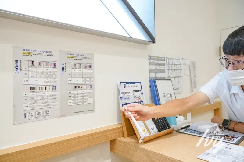 維修區有座位方便客人坐在這裡等候,還有透明窗可以讓我們看到整個維修過程,這點真的安心。若是有趕時間的iPhone使用者,也可以電話或線上預約手機維修,可以更快取機唷!