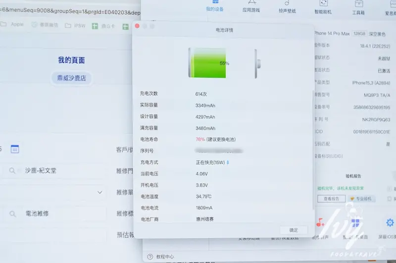 最後,鼎威會再使用Apple原廠診斷工具,跑完系統配置和維修後診斷,確認電池健康度恢復到100%,並且所有功能都正常運作,整個過程大概1小時左右,真的很快速!