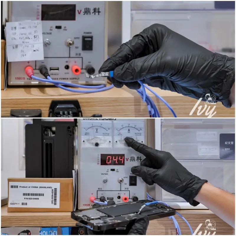 鼎威在更換電池前,還會先檢測主板電流狀況,確認電流是穩定正常的,如果發現漏電異常,則可能連主機板都有可以能需要維修。我覺得這步驟蠻重要的,就怕換完電池耗電狀況還是很快,那麼我想我會氣死~