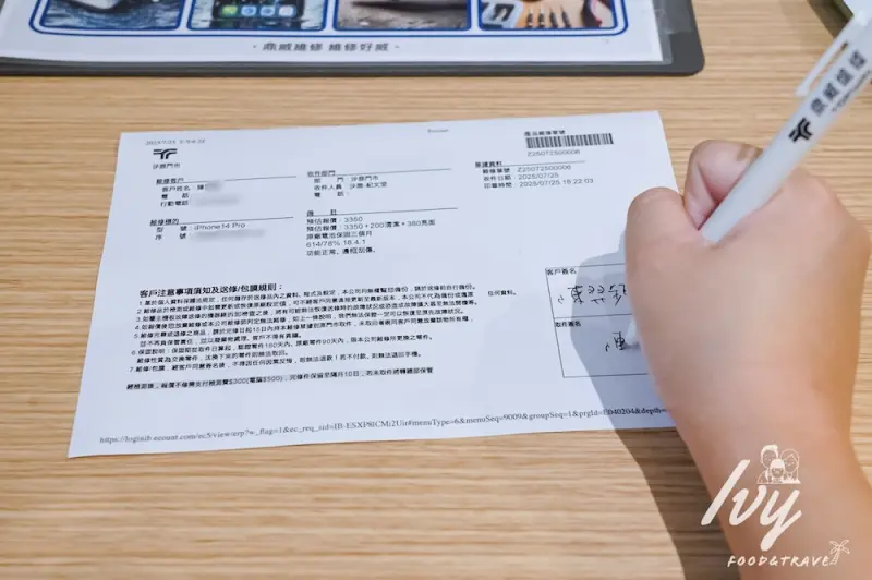 維修前會先請我填寫紀錄維修資料,像是姓名、電話、型號等,方便雙雙方記錄和未來資料查詢。