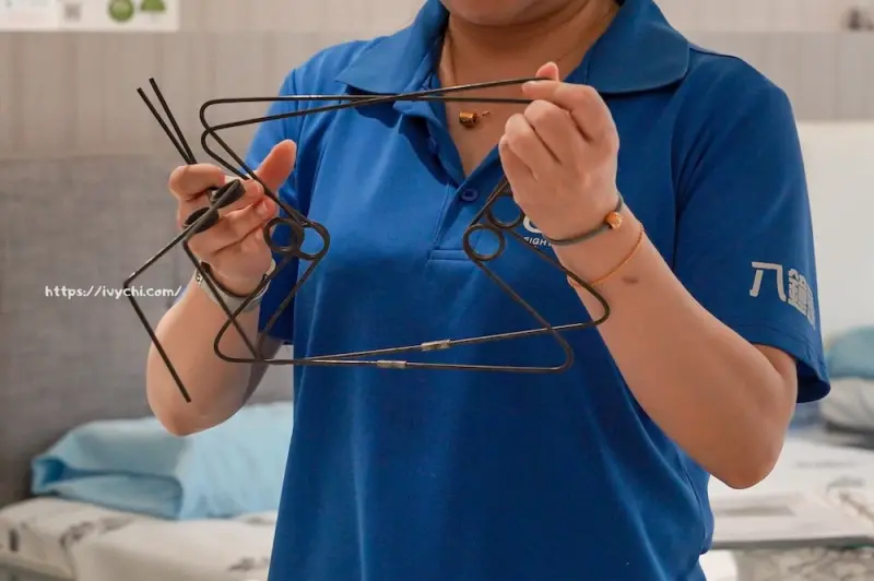 八鐘頭的尤莉床墊,採用台灣中鋼製造的2.3線徑獨立筒,支撐性超強,躺下去可以感受到床墊穩穩地托住你的身體,而且非常的符合人體工學,在躺下去以後可以貼合身形,不會因為是現場目前最紮實的床款就讓人有異物感。。