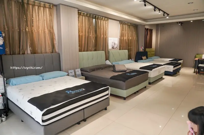店內提供的九款獨立筒床墊,各有千秋,透過不同造型、表布,再結合泡棉、乳膠、記憶棉等多樣化的材質組合,成功創造出豐富的軟硬度與躺感選擇,滿足了各種不同的睡眠偏好。