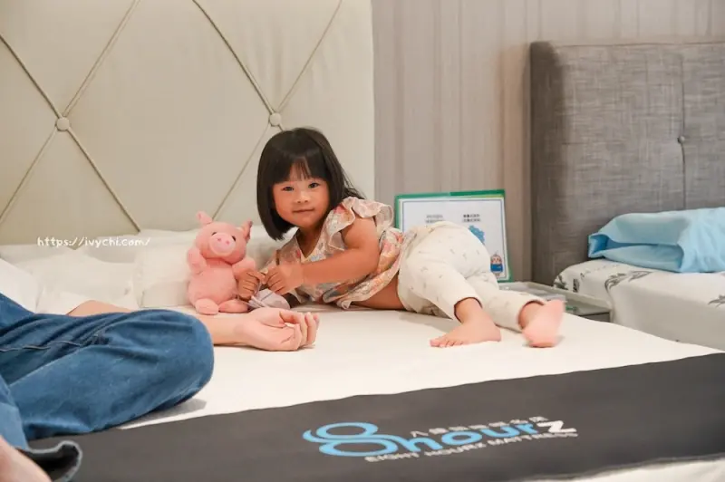 體驗過程還提供極大的自由度,讓我們可以不限時並且隨心所欲地試躺每一張床墊,舒眠顧問在介紹完畢後,並不會緊緊跟隨在旁,更沒有任何強迫推銷的壓力,帶著活潑好動的甯寶來,在這裡玩得不亦樂乎,甚至還會自己挑選床墊,自顧自地躺著玩耍,那畫面逗趣得讓我們都覺得有點不好意思了!