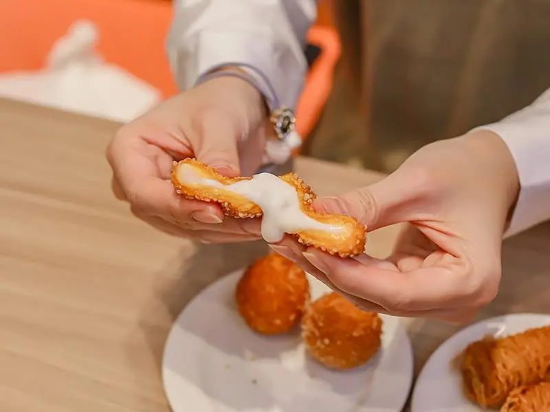 招牌小菜與甜點:沙漏魚皮與椰漿流心球