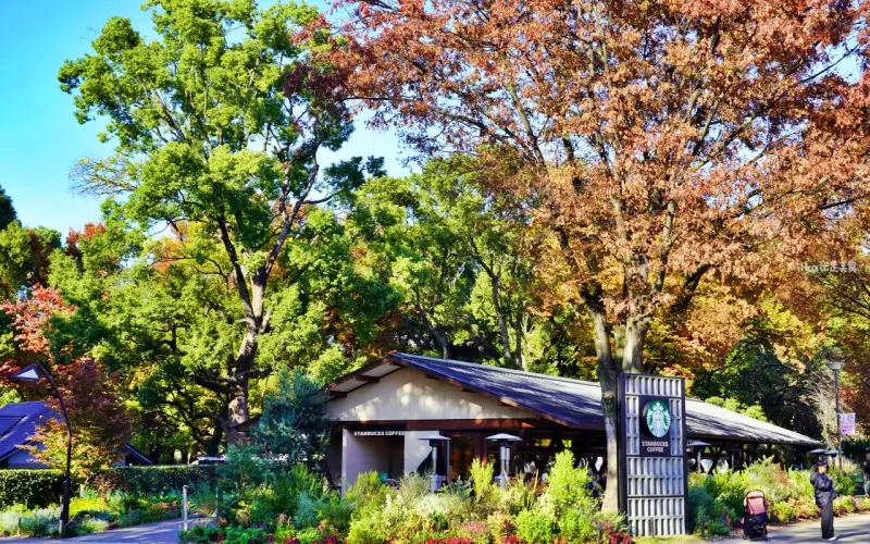 • 星巴克 上野恩賜公園店: 這家星巴克座落在噴水廣場附近,是平屋木質調建築,設有多席露臺座位,與公園綠林融合在一起。